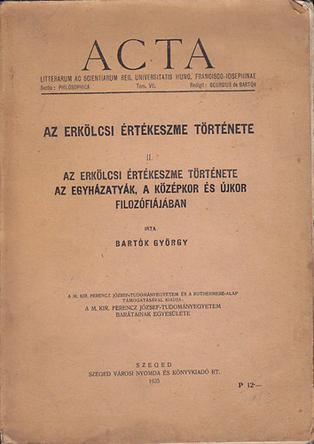 A Böhm-i rendszer továbbgondolása, illetve Kant filozófiájának kulcsfogalmai egyaránt egy axiológiailag megalapozott erkölcsi elmélet megteremtésére inspirálták Bartókot. Ennek formálódásáról már a kolozsvári évek néhány írása is tanúskodik, de az igazán jelentős művek Bartók szegedi professzorsága idején születtek meg. A tudományos elismerés sem késett sokáig: 1927-ben a Magyar Tudományos Akadémia levelező tagja lett.
