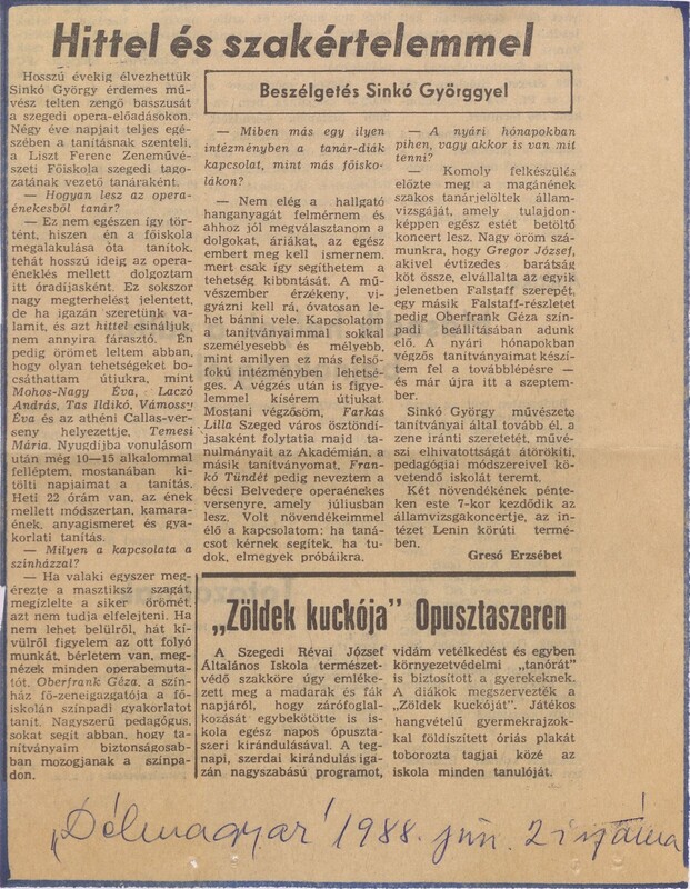 „Minden hangban az utánpótlást kerestem. Akarva-akaratlan az ország délvidékének magánénekesi ellátottsága vezérelt.