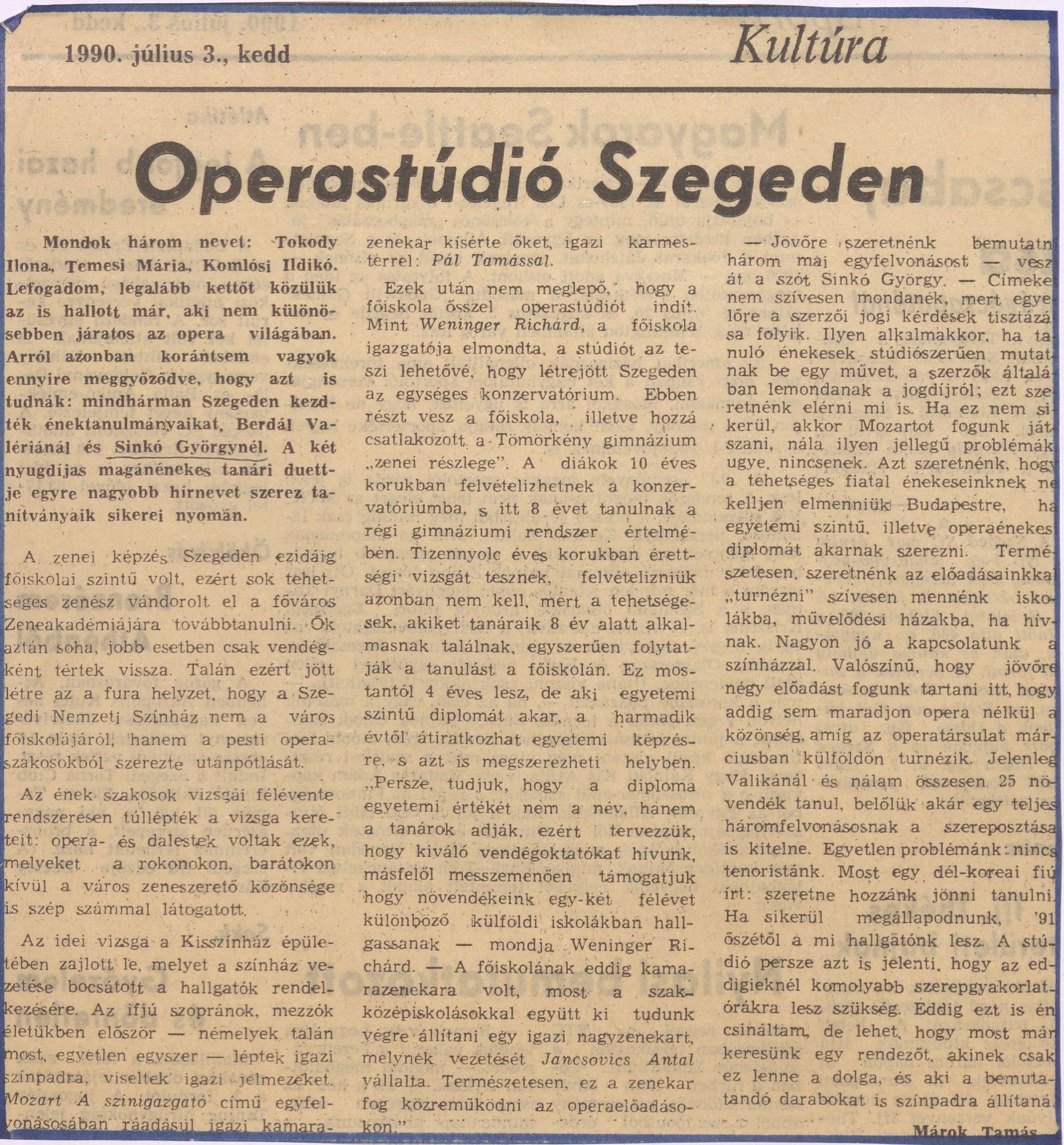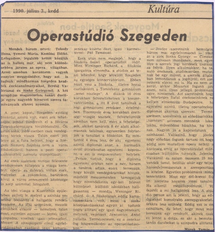 Megalapítottam a Vaszy operastúdiót, melynek következő évi programjában már zenekaros, kórusos, teljes opera-előadás szerepelt.”