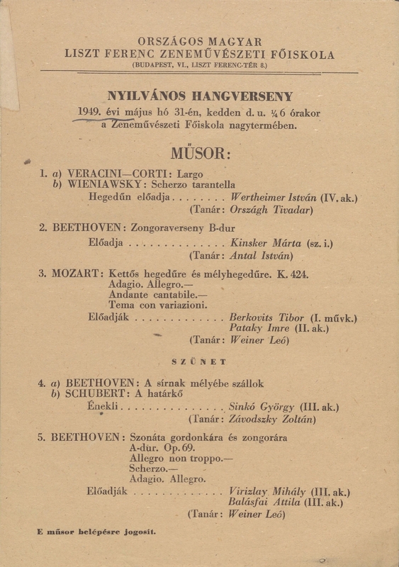 Igaz, hogy a Zenedében tandíjat kellett fizetni, ezért aztán otthon édesanyámnak egy szót sem szóltam, mert még magam sem voltam biztos abban, hogy jót teszek-e vagy rosszat?