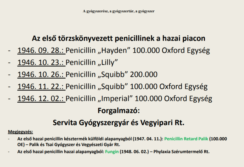 Hamarosan létrehoztak egy közös céget, a Servita Gyógyszergyár és Vegyipari Rt.-t, amelynek vezérigazgatója Ráth István, tudományos igazgatója Szent-Györgyi Albert lett. Céljuk a penicillin antibiotikum hazánkba való behozatala és hazai előállítása volt. A legelső penicillinkészítményt, amely a Hayden névre hallgatott, a Servita Rt. hozta be hazánkba (törzskönyvezés 1946. szept. 28.).