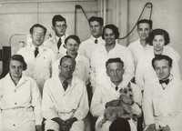 | Szent-Györgyi Albert szegedi munkatársai körében | szgya-valogatott-web-19, szgya_portre_web_049 | Csoportkép, munkatársak. Az Orvosi Vegytani Intézet, valamint a Szerves és Gyógyszerészvegytani Intézet munkatársairól készült közös csoportkép. Szent-Györgyi, amellett, hogy az Orvosi Vegytani Intézet élén állt, 1935-40 között megbízott tanszékvezetője volt a Matematikai és Természettudományi Karhoz tartozó Szerves és Gyógyszerészvegytani Intézetnek is. | Description: Csoportkép, munkatársak. Az Orvosi Vegytani Intézet, valamint a Szerves és Gyógyszerészvegytani Intézet munkatársairól készült közös csoportkép. Szent-Györgyi, amellett, hogy az Orvosi Vegytani Intézet élén állt, 1935-40 között megbízott tanszékvezetője volt a Matematikai és Természettudományi Karhoz tartozó Szerves és Gyógyszerészvegytani Intézetnek is. | ||||