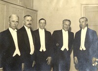 | Informális csoportkép az 1937-es Nobel-díjas kitüntetettekről | szgya-053 | Nobel-napok, Nobel-díj átadási ünnepség. Csoportkép. A hatodik díjazott, George Paget Thomson betegség miatt nem tudott Stockholmba utazni. A felvétel közvetlenül a díjátadási ceremónia előtt készülhetett valamely öltözőhelyiségben. | Description: Nobel-napok, Nobel-díj átadási ünnepség. Csoportkép. A hatodik díjazott, George Paget Thomson betegség miatt nem tudott Stockholmba utazni. A felvétel közvetlenül a díjátadási ceremónia előtt készülhetett valamely öltözőhelyiségben. | |||