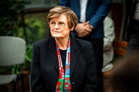 | Karikó Katalin Szegeden - József Attila Tanulmányi és Információs Központ - Ünnepi ülés | Kariko_Katalin_Szegeden_006 | Karikó Katalint nagy tömeg és a sajtó képviselői fogadták 2024. április 16-án, az SZTE TIK főbejáratához érkezésekor, ahol Prof. Dr. Szabó Gábor, a Szegedi Tudományegyetemért Alapítvány kuratóriumi elnöke, Prof. Dr. Rovó László, az SZTE rektora, Dr. Fendler Judit, az SZTE kancellára, Dr. Salgó László, Csongrád-Csanád vármegye főispánja és Dr. Botka László, Szeged polgármestere köszöntötte. A Nobel-díjas Dr. Karikó Katalin, a Szegedi Tudományegyetem kutatóprofesszora tiszteletére rendezett ünnepi ülésen részt vett Karikó Zsuzsanna, a Nobel-díjas professzor nővére is, valamint a gazdasági, civil, szakmai, társadalmi és politikai szervezetek vezetői, a tudományos és kulturális intézmények képviselői, az oktatási és egészségügyi intézmények vezetői, illetve Karikó Katalin vendégei: kisújszállási alma matere, a Móricz Zsigmond Gimnázium képviselői, egykori szegedi egyetemi csoporttársai és az első munkahelye, a Szegedi Biológiai Központ munkatársai. | Description: Karikó Katalint nagy tömeg és a sajtó képviselői fogadták 2024. április 16-án, az SZTE TIK főbejáratához érkezésekor, ahol Prof. Dr. Szabó Gábor, a Szegedi Tudományegyetemért Alapítvány kuratóriumi elnöke, Prof. Dr. Rovó László, az SZTE rektora, Dr. Fendler Judit, az SZTE kancellára, Dr. Salgó László, Csongrád-Csanád vármegye főispánja és Dr. Botka László, Szeged polgármestere köszöntötte. A Nobel-díjas Dr. Karikó Katalin, a Szegedi Tudományegyetem kutatóprofesszora tiszteletére rendezett ünnepi ülésen részt vett Karikó Zsuzsanna, a Nobel-díjas professzor nővére is, valamint a gazdasági, civil, szakmai, társadalmi és politikai szervezetek vezetői, a tudományos és kulturális intézmények képviselői, az oktatási és egészségügyi intézmények vezetői, illetve Karikó Katalin vendégei: kisújszállási alma matere, a Móricz Zsigmond Gimnázium képviselői, egykori szegedi egyetemi csoporttársai és az első munkahelye, a Szegedi Biológiai Központ munkatársai. [show more] | ||