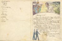 | A Budapesti III. kerületi Magyar Királyi Állami Árpád Gimnázium 8. osztályos tanulóinak rajzos gratuláló levele Szent-Györgyi Alberthez a Nobel-díj elnyerése alkalmából | szgya_nobel_album_050_001_web | Gratuláló levél. A rajz, amely Szent-Györgyi Albertet ábrázolja, Szentesi Pongrác alkotása. | Description: Gratuláló levél. A rajz, amely Szent-Györgyi Albertet ábrázolja, Szentesi Pongrác alkotása. | |||