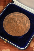 | Description: Szent-Györgyi Albert Nobel-díjának 75. évfordulójának ünnepsége után jött létre a Szegedi Orvosbiológiai Kutatások Jövőjéért Alapítvány. A szervezők (Hegyi Péter és Varró András) az alapítvány segítségével életre hívták a Szegedi Tudós Akadémiát. A szervezet célja, hogy a kutatásban tehetséges diákokat középiskolás koruktól kezdve végigvezesse a tudóssá válás lépcsőfokain. Az oktatási folyamat része a Nobel-díjasokkal való személyes találkozás a kétféle képzés (középiskolai és egyetemi ) keretén belül. 2021-től a szegedi akadémia több egyetem és kutató intézet együttműködésével Nemzeti Tudósképző Akadémiává alakult át. A 2015-ös szegedi találkozó díszvendége Erwin Neher Nobel-díjas biofizikus volt. Őt és feleségét, Eva-Maria Nehert, a göttingeni XLab megalapítóját ábrázolja az emlékérem. [show more] | ||