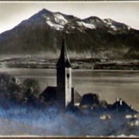 Thuni tó : Beatenberg (hegy) a templommal. A háttérben a Jungfrau