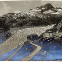 Furka országút : Hotel Belvedere az út mellett a Rhongletscherrel