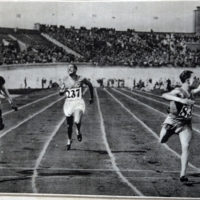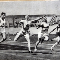100 m döntő finische: a 4 első beérkezése: London (2.), Williams (1.) 10 4/5 mp, Lammers (3.), Legg (4.)