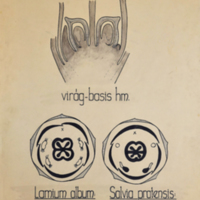 Iris Germanica portok/anthera/km., Tulipa Gesneriana termőtáj vázlatának km.-e