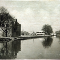 Mühlheim am Main : Schleüssen-csatorna a hajóállomással és csónakdával