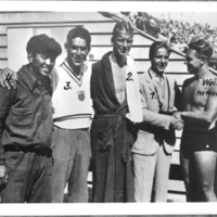 200 méteres mellúszás győztesei : [E. Sietas 2. német Tetsuo Hamuro japán 1.]
