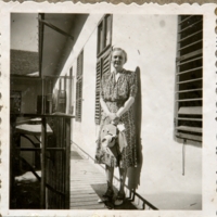 Margit az udvaron, folyosón