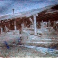 A hadosztály parancsnokság tiszti étkezdéje, előtte a diadalkapu]