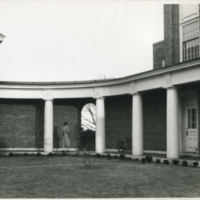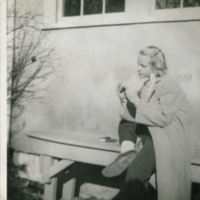 Miskolczy Orsolya egy tornácos ház bejáratánál