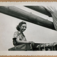Vitorlás kirándulás, a kormányos mellett a mosolygó Szent-Györgyivel