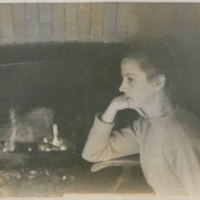 Borbíró Márta az otthonában, a kandalló tüzénél