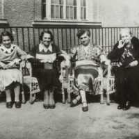 Szent-Györgyi Albert családjának hölgytagjai a Kálvária téri épület udvarán