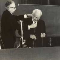 Szent-Györgyi Albert előadást tart Csapó Árpád professzor intézetében