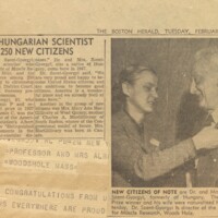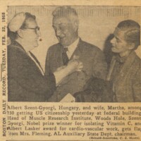 Noted Hungarian scientist among 250 new citizens : sajtóhíradás Szent-Györgyi Albert és felesége amerikai állampolgárságáról