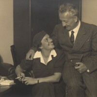 Szent-Györgyi Albert és felesége a laboratóriumban a Nobel-díj elnyerésének másnapján
