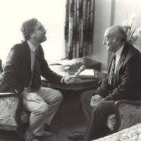 Kulka Frigyes sebészprofesszor és beszélgetőpartnere, Vinkler Lászlóné Mária