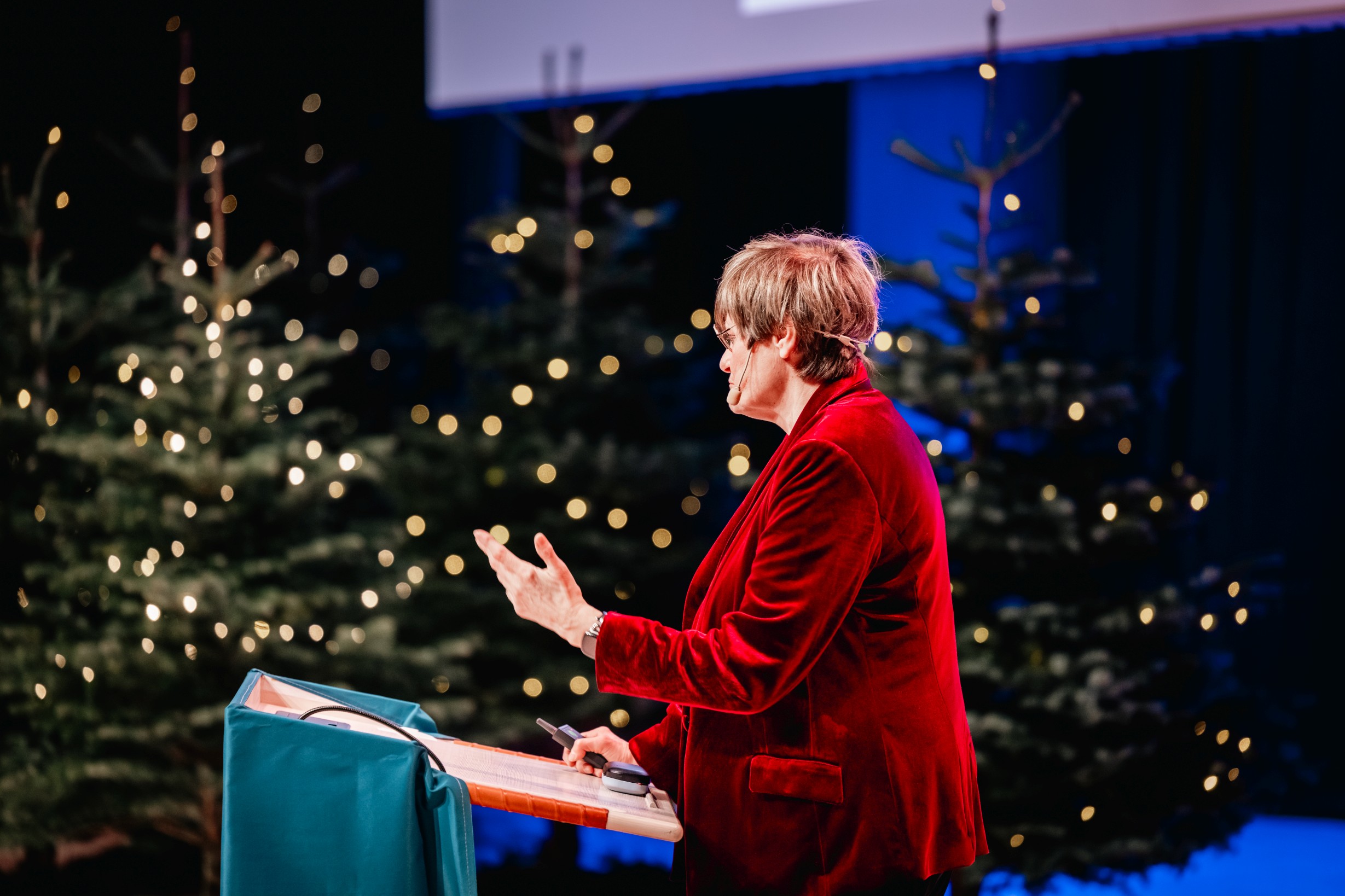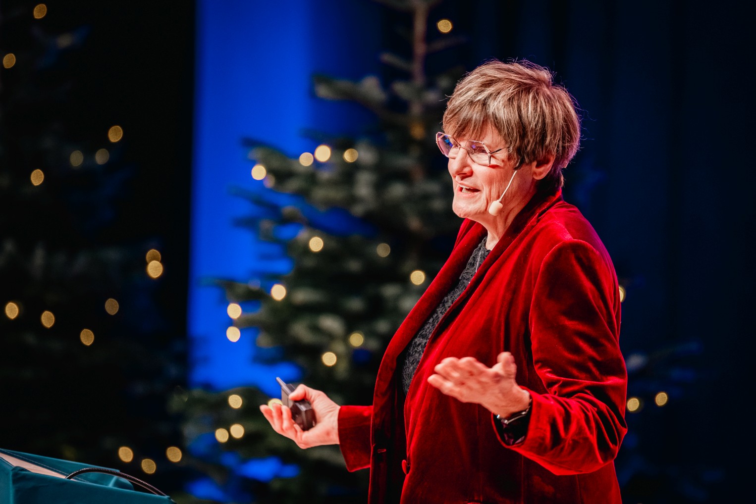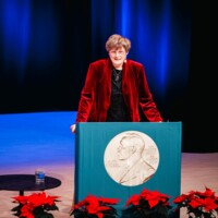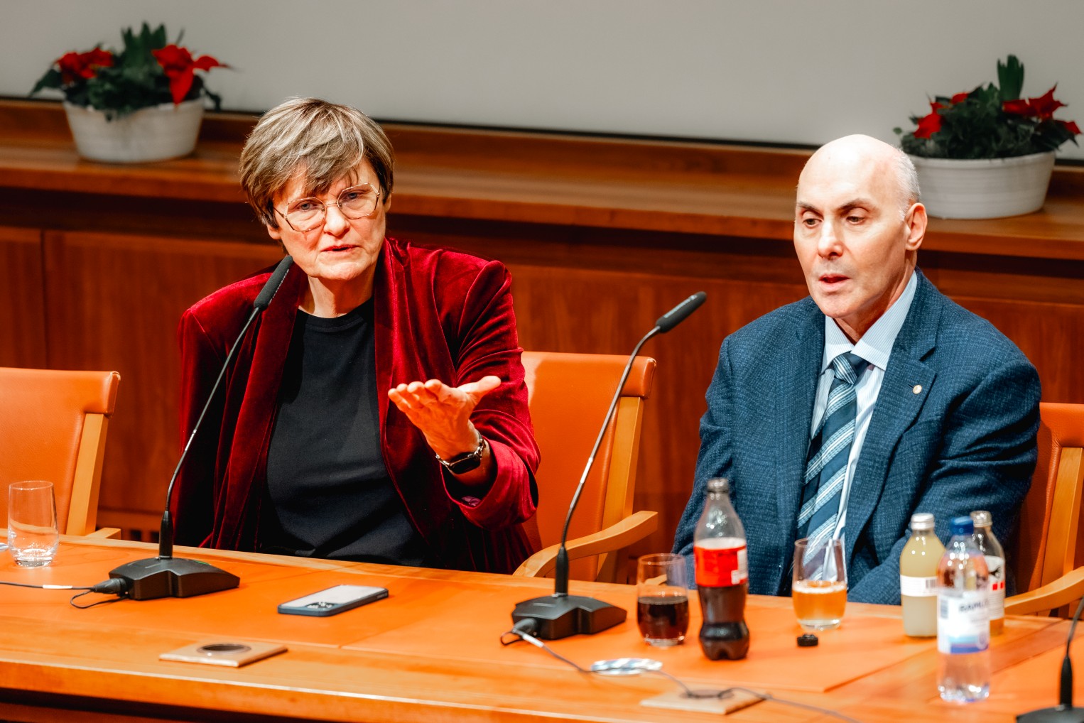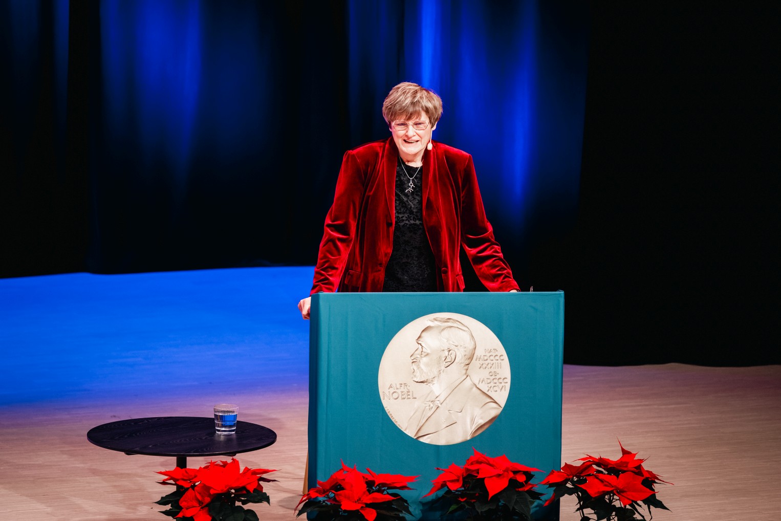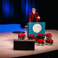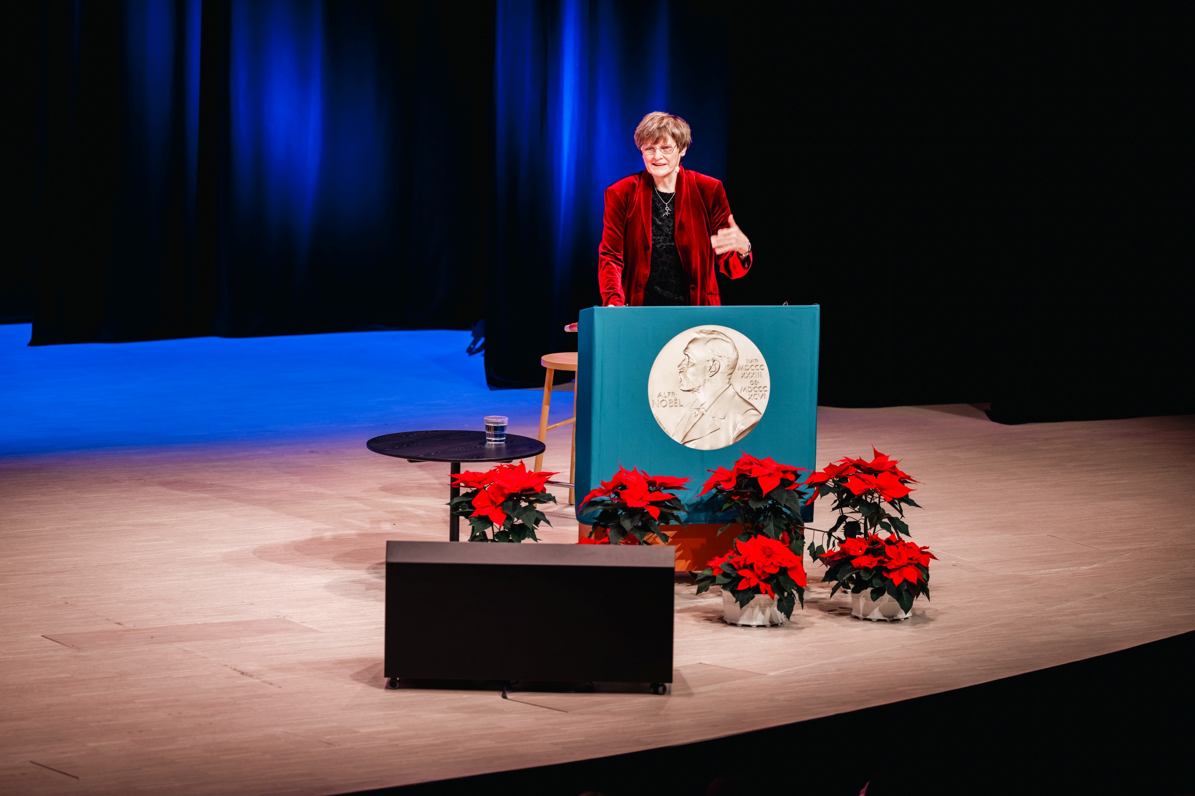 Karikó Katalin 2023. december 7-én tartotta meg Nobel-díjas előadását (Developing mRNA for therapy) a stockholmi Aula Medicában, a Karolinska Intézetben.